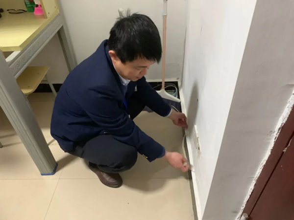 在走访一间又一间的学生寝室后,发现宿舍内务标准化落实较好,但还存在一些宿舍网线走线不规范、脚踏板弯曲等问题,检查小组将存在安全隐患情况的宿舍报给相关管理部门并提出整改要求。